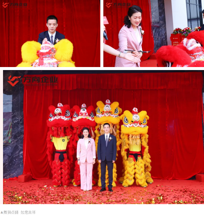 醒獅點(diǎn)睛降祥瑞,鑼鼓齊鳴慶歡騰。各位貴賓共同為慶典剪彩,開(kāi)啟方向發(fā)展新里程。隨后,方向企業(yè)董事長(zhǎng)梁維銘與董事總經(jīng)理劉麗燕共同為祥獅點(diǎn)睛,隨著祥獅覺(jué)醒、起舞、采青吐福,將本次慶典推向了高潮。