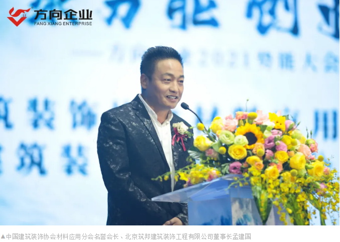 中國(guó)建筑裝飾協(xié)會(huì)材料應(yīng)用分會(huì)名譽(yù)會(huì)長(zhǎng)、北京筑邦建筑裝飾工程有限公司董事長(zhǎng)孟建國(guó)在致辭中肯定了方向企業(yè)的產(chǎn)品與服務(wù),并表示人有方向,企業(yè)也要有方向,方向企業(yè)品牌好、文化好、產(chǎn)品好,祝愿方向企業(yè)的未來(lái)發(fā)展越來(lái)越好,成為陶瓷行業(yè)的方向與標(biāo)桿。