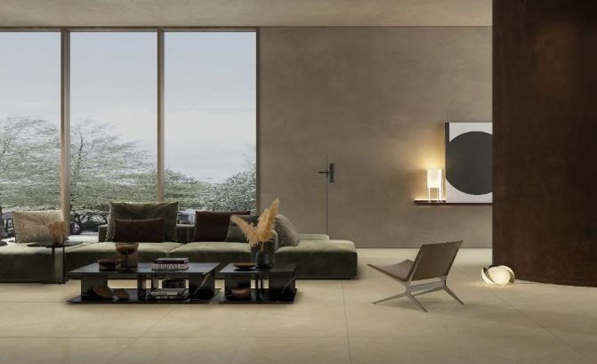 黃色總能夠存在著明媚陽光或是活潑的基調(diào),但色調(diào)的不同會讓它的整體辨識度有所改變。大面積鋪貼時,紋理中白流沙般蒼茫與靜穆的質(zhì)感,可傳達(dá)溫馨舒適的視覺效果,在燈光的渲染之下,營造出優(yōu)雅、尊貴、治愈的家居氛圍。