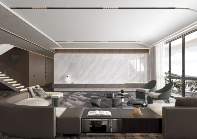 以陶瓷大板作為背景墻裝飾的材料,如玉般溫潤的表面觸感,質(zhì)地層次感豐富,紋理精細(xì),賦予空間溫馨舒適的格調(diào)。