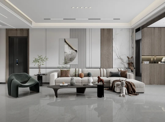 將知性優(yōu)雅的簡素灰與溫暖木色相互搭配,簡奢質(zhì)感呼之欲出,進一步放大空間視覺效果,讓空間更顯大氣與優(yōu)雅。