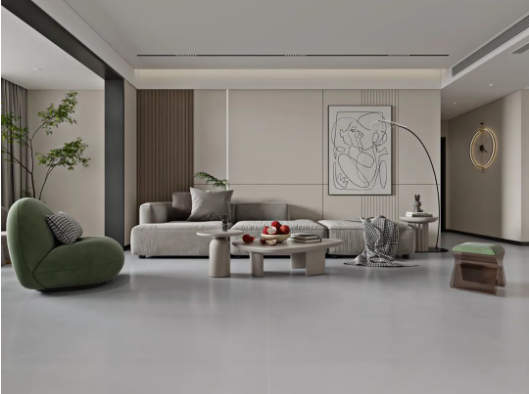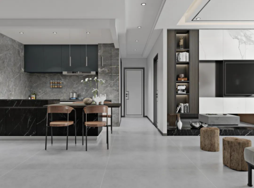 地面以宋素|凡古磚廣寒秋進(jìn)行通鋪,自然純粹的暖灰底紋搭配簡約設(shè)計讓心境升華到另外一個層次,時光賦予的溫柔,彰顯著家居空間的浪漫與溫馨。